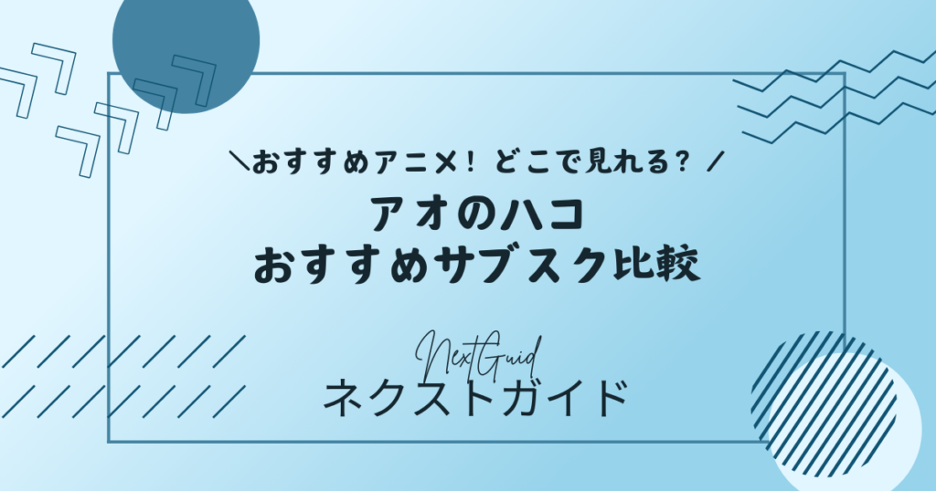 アニメ『アオのハコ』は、公式サイトでNetflixの先行配信が案内されており、その後はABEMA、dアニメストア、DMM TV、Hulu、Prime Video、U-NEXT、Leminoなどで順次配信されています。つまり、「アオのハコ アニメ 配信 どこで見れる?」への答えは、1社限定ではなく複数のサブスクで見られる作品です。そのうえで、見やすさを左右するのは「無料トライアルの有無」「月額料金」「アニメ以外も楽しめるか」の3点です。特に初めて登録するなら、31日間無料トライアルがあり、作品ページでも『アオのハコ』が見放題表示になっているU-NEXTは有力候補になります。ABEMAやHuluでも配信自体は確認できますが、無料トライアル面ではU-NEXTやPrime Video、dアニメストアのほうが始めやすいです。
