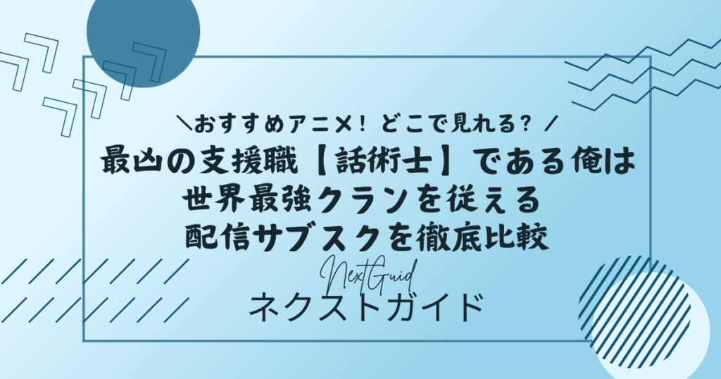 この中でも、迷ったらU-NEXTを選んでおけば失敗しにくいです。アニメ『最凶の支援職【話術士】である俺は世界最強クランを従える』だけでなく、関連するアニメや原作コミックの電子書籍まで視野に入れやすく、1つのサービスで完結しやすいのが強みです。