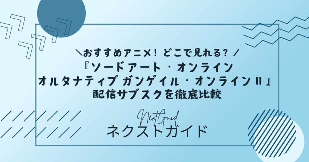 アニメ『ソードアート・オンライン オルタナティブ ガンゲイル・オンラインⅡ』をどこで見れるのか知りたい、そんな人に向けて配信サービスをわかりやすく整理しました。結論からいうと、本作はABEMAで地上波同時・単独最速配信され、その後U-NEXT、dアニメストア、Hulu、DMM TV、Prime Videoなどでも見放題配信されています。なかでも、はじめて使う人が見やすいのは31日間無料トライアルがあるU-NEXTです。配信状況だけでなく、料金比較、作品情報、声優、制作会社、あらすじまでまとめているので、視聴前に必要な情報をこの記事だけで確認できます。
