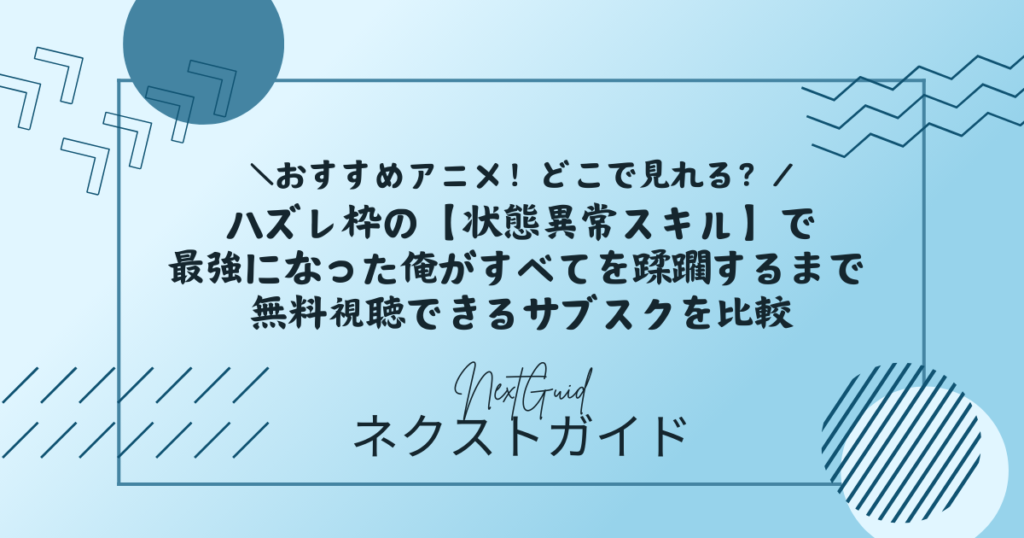 - アニメ『ハズレ枠の【状態異常スキル】で最強になった俺がすべてを蹂躙するまで』の動画配信はどこで見れる?(サブスク)