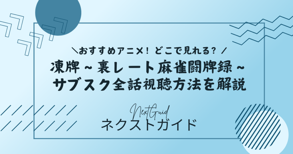 アニメ『凍牌~裏レート麻雀闘牌録~』は、U-NEXT、dアニメストア、DMM TV、HuluABEMA、Prime Videoなどで作品ページが確認できるタイトルです。なかでも、31日間無料トライアルがあり、配信確認もできるU-NEXTは最初に試しやすい有力候補です。dアニメストアでは全25話表記もあり、完走したい人にとって参考になります。