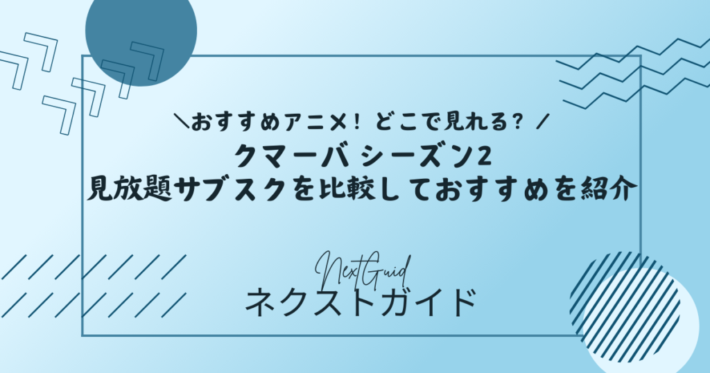 アニメ『クマーバ シーズン2』は、dアニメストアで全12話表記、DMM TVでもエピソード12話表記、Prime Videoでもエピソード一覧が確認できます。U-NEXTも作品ページ上で見放題配信が確認できるため、全話視聴の有力候補です。少なくとも、検索ユーザーが知りたい「クマーバ シーズン2はサブスクで全話見られるのか?」という疑問に対しては、U-NEXT・dアニメストア・DMM TV・Prime Video系をまず確認すればOKといえます。