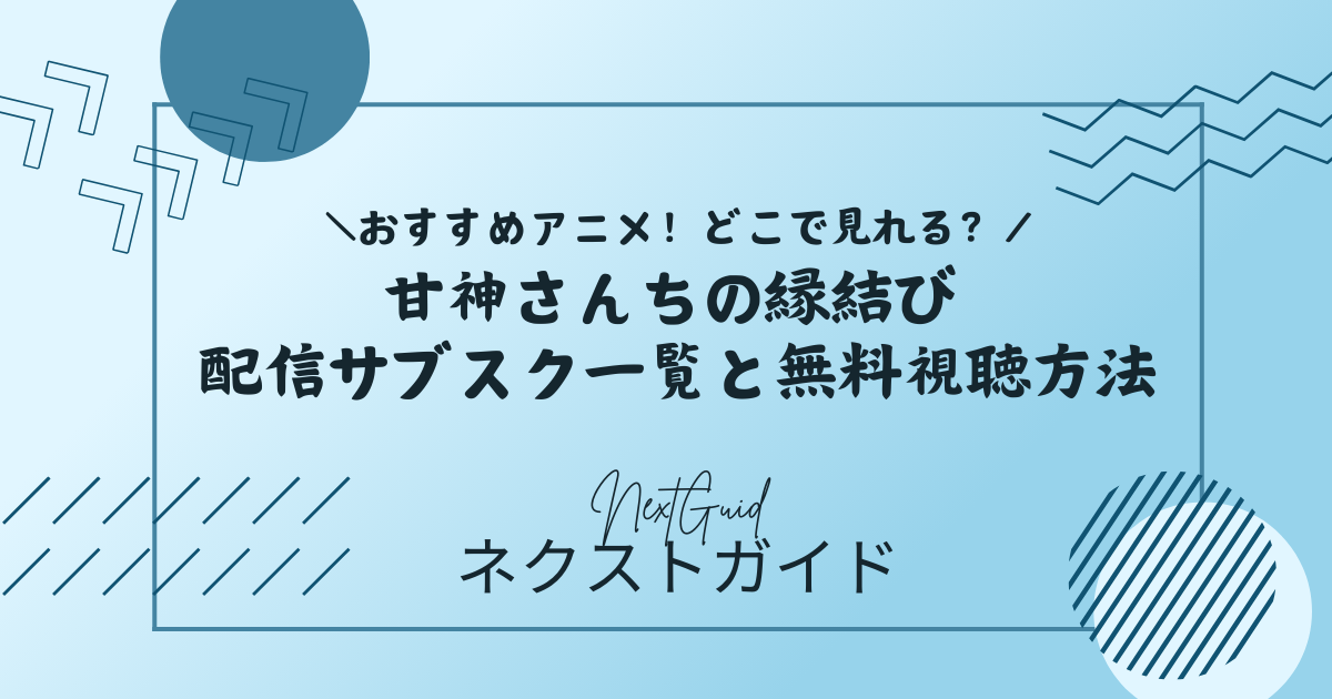 アニメ『甘神さんちの縁結び』を「どこで見れる?」「無料で見られる?」「全話見放題のサブスクは?」と探している方に向けて、最新の配信状況をわかりやすくまとめました。結論からいうと、『甘神さんちの縁結び』はU-NEXTABEMAHulu、dアニメストア、DMM TVなどで配信されています。公式サイトでは、Amazon Prime Videoが地上波同時配信、その他の主要サービスは2025年1月19日から順次配信と案内されています。なかでも31日間無料トライアルがあるU-NEXTは、初めて使う方が試しやすい有力候補です。この記事では、各サービスの違い、U-NEXTでの見方、声優・制作会社・あらすじまでまとめて解説します。