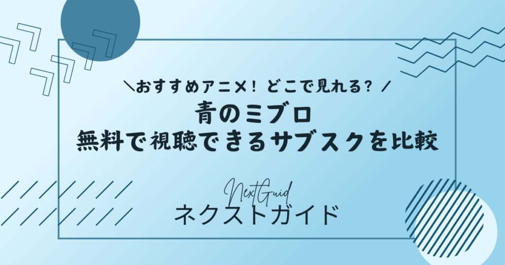 アニメ**『青のミブロ』の配信はどこで見れる?という疑問に対しては、U-NEXT、ABEMAプレミアム、Hulu、Prime Video、dアニメストア、DMM TVなどで視聴可能というのが結論です。中でも、31日間無料トライアルがあり、第1期・第2期の作品ページも確認できるU-NEXTは、これから見始める人にとって有力候補です。ABEMAプレミアムとHuluには無料トライアルがないため、初回のお試し重視ならU-NEXT、Prime Video、dアニメストア、DMM TVが比較対象になります。迷ったらまずはU-NEXTで『青のミブロ』を無料トライアル視聴**し、自分に合うか確かめるのが失敗しにくい選び方です。