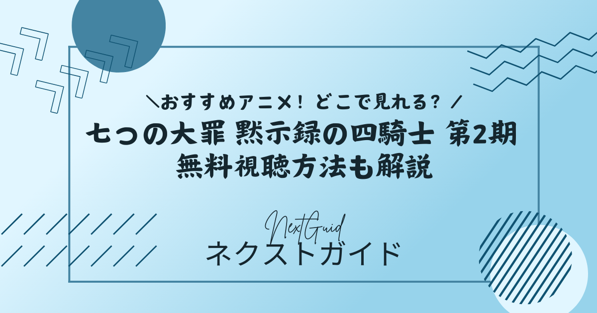 - アニメ『七つの大罪 黙示録の四騎士 第2期』の動画配信はどこで見れる?(サブスク)