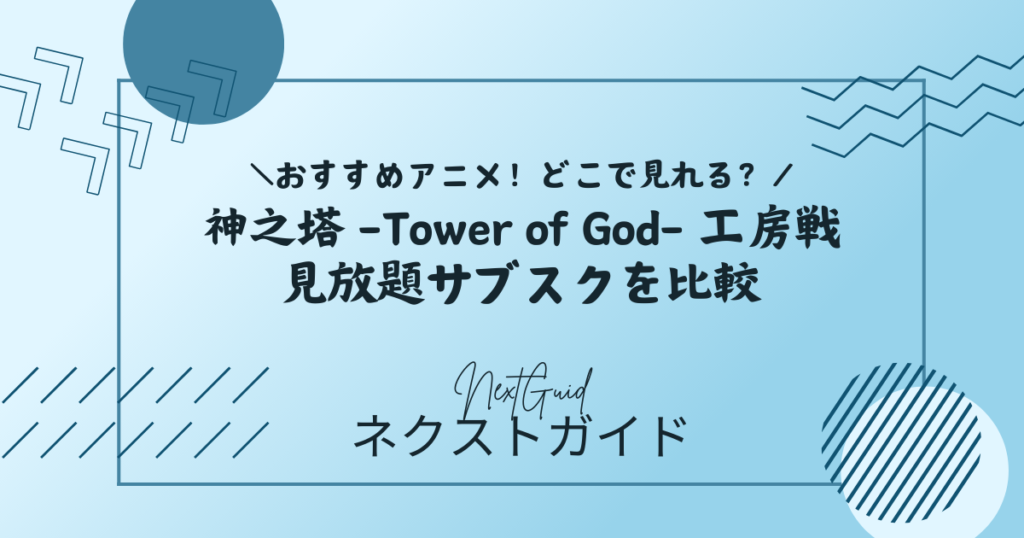 「神之塔 -Tower of God- 工房戦 アニメ 配信 どこで見れる?」と検索している方へ。結論からいうと、アニメ『神之塔 -Tower of God- 工房戦』はU-NEXT、DMM TV、dアニメストア、Hulu、ABEMAプレミアム、Prime Videoなど複数の動画配信サービスで見放題配信されています。公式サイトでは2024年10月6日から順次配信開始と案内されており、ABEMAでは見逃し配信も行われていました。なかでも、シリーズの第1期・第2期前半「王子の帰還」までまとめて追いやすく、31日間無料トライアルがあるU-NEXTは、これから一気見したい人と相性がよい選択肢です。この記事では、アニメ『神之塔 -Tower of God- 工房戦』の配信状況、各サブスクの違い、声優・制作会社・あらすじまで、表も使いながらわかりやすく整理していきます。