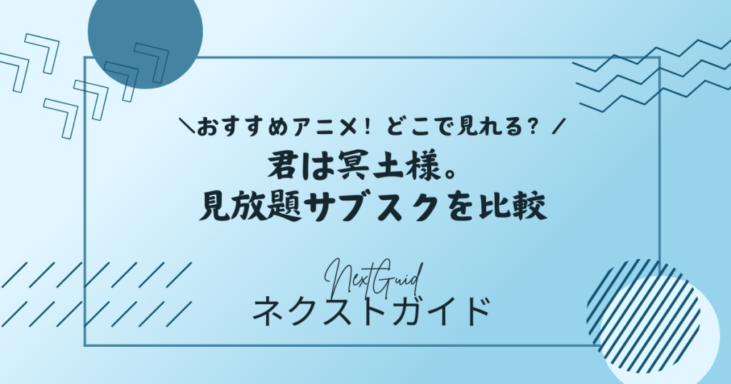 アニメ『君は冥土様。』をどこで見るか迷ったときは、「無料体験の長さ」「アニメ以外も楽しめるか」「使いやすさ」の3点で比べると選びやすくなります。結論として、総合力で選ぶならU-NEXT、アニメ特化の安さで選ぶならdアニメストア、月額の安さ重視ならDMM TVが候補です。ABEMAは先行配信の強み、Huluはアニメ以外の国内外ドラマも見たい人向きです。